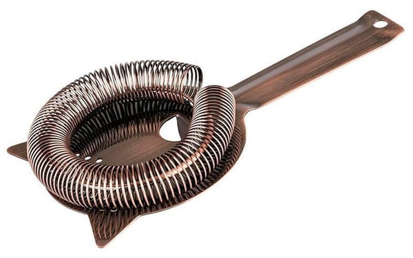 Коктейльное сито выполнено из меди, применяется для фильтрования крупных частиц льда или кусочков фруктов во время переливании коктейля в бокал из шейкера.