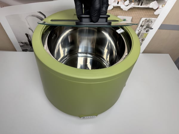 Нагреватель из нержавеющей стали AISI 304. Крышка из закаленного стекла с изолированной ручкой, вырезом для ковша и алюминиевой петлей.
