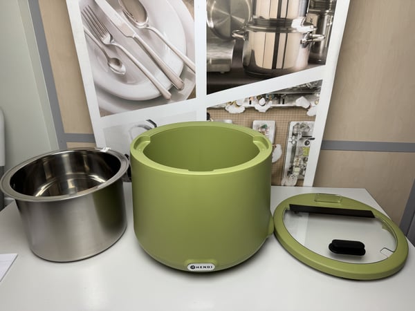 Супница HENDI является стандартным, лучшим решением для поддержания постоянной температуры первых блюд – разных супов, бульонов, жидкого пюре и каш, готовых к подаче, без подгорания. Прибор имеет современный корпус. Мармит-супница используется на кухнях для хранения уже приготовленных блюд, на линиях раздачи, для ресторанов самообслуживания, для выездного обслуживания, баров. Супницы позволяют сохранять температуру первых блюд без подключения к электросети в течение длительного времени и подогревать остывшее блюдо, установив необходимую температуру подогрева. HENDI UNIQ разработан известным голландским дизайнером Робертом Бронвассером и доступен в 4 стильных цветах.
