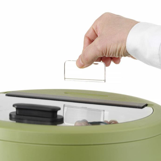 Специальная двухкомпонентная конструкция крышки уменьшает потери тепла при открывании. Конструкция крышки отводит конденсированный водяной пар обратно в контейнер.