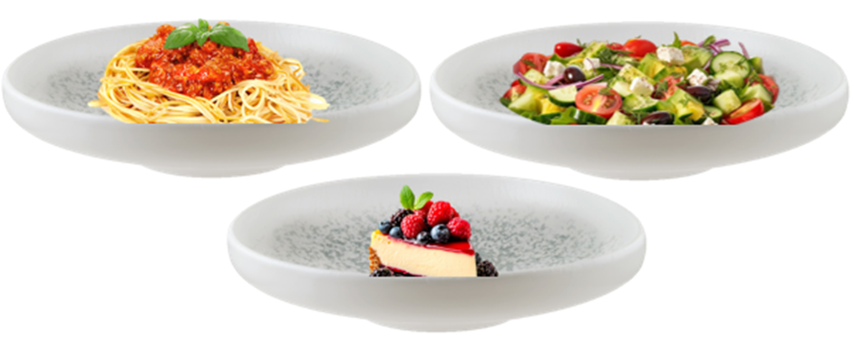 Тарелки и салатники имеют укрепленный борт, который выдерживает высокие механические нагрузки, благодаря чему изделия почти не подвержены сколам.