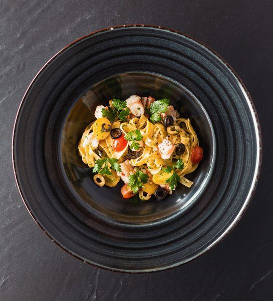 Тарелка Fine Dine серии Onyx line идеально подойдет для сервировки макаронных блюд в ресторанах, кафе, гостиницах и во многих других заведениях общественного питания различного направления.