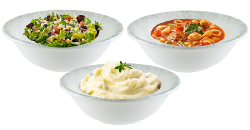 Тарелки и салатники имеют укрепленный борт, который выдерживает высокие механические нагрузки, благодаря чему изделия почти не подвержены сколам.