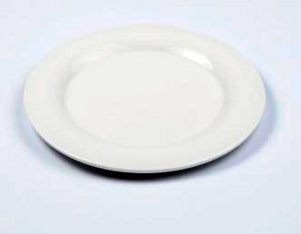 Тарелка круглой формы выполнено из очень крепкого, устойчивого к износу и высоким температурам фарфора теплого молочного цвета.