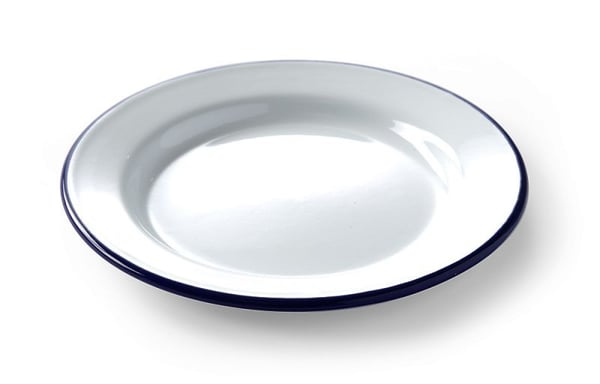 Эмалированная тарелка своим нежным цветом и тонкой синей линией сделает элегантным любой стол, тем более эмалированная посуда снова в тренде.