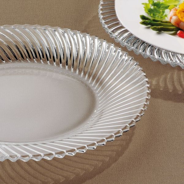 Хрустальная тарелка серии Samba со сверкающими разрезами, напоминающими изящные головные уборы из перьев, идеально подойдет для подачи вторых блюд, горячих и холодных закусок, холодных мясных блюд, сладких горячих блюд с соусом, салатов.