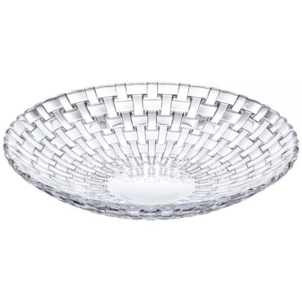 Хрустальная тарелка серии Bossa Nova с текстурным узором переплета ткани, идеально подойдет для подачи салатов, различных закусок и фруктов в ресторанах, гостиницах и в заведениях общественного питания различного направления, а также для презентации различных закусок.