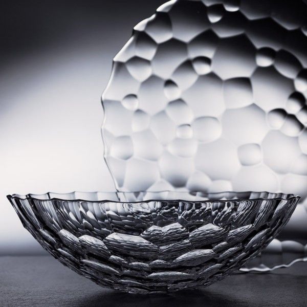 Хрустальная тарелка серии Sphere с геометрическими узорами сферической формы, идеально подойдет для подачи различных закусок, салатов в ресторанах, гостиницах и в заведениях общественного питания различного направления, а также для презентации фруктов.