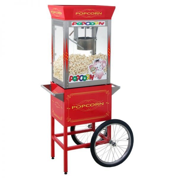 Изделие имеет привлекательный внешний вид и удобную эргономику. Тележка для попкорна, аппарат попкорна и витрина выполнены в едином дизайне.