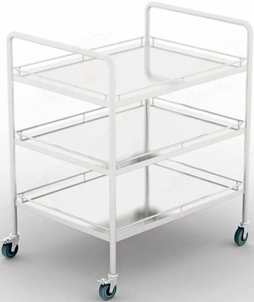 Тележки сервировочные предназначены для перемещения на предприятиях общественного питания продуктов, готовых блюд, напитков и посуды, а также для подачи грязной посуды из зала в моечное отделение. Тележки имеют прочную сварную конструкцию, снабжены колесами на резиновой основе, смягчающими вибрацию. Пара колес дополнительно снабжена блокировкой. На каждой полке предусмотрена отбортовка с 4-х сторон. Грузоподьемность тележки 100 кг.