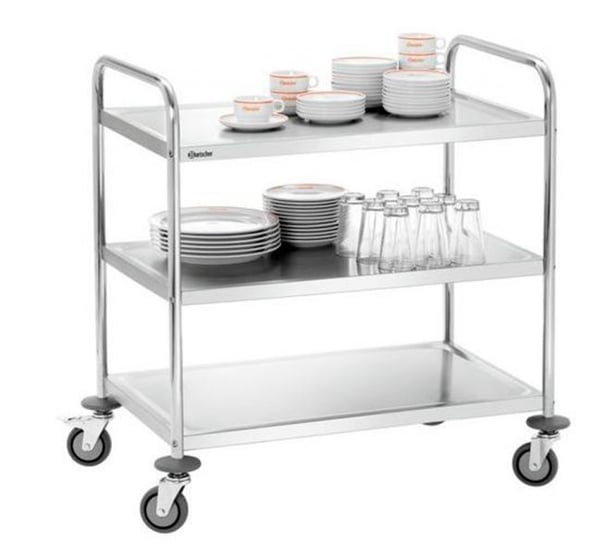 Сервировочная тележка используется для перемещения на предприятиях общественного питания продуктов, готовых блюд, напитков и посуды, а также для выноса грязной посуды из зала в моечное отделение.