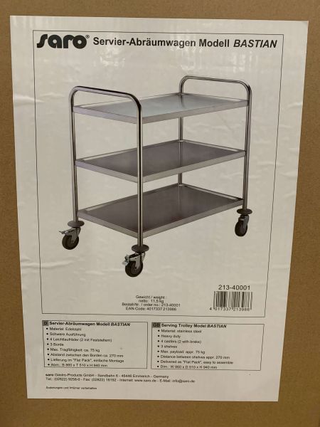 Сервировочная тележка Saro Bastian используется для перемещения на предприятиях общественного питания продуктов, готовых блюд, напитков и посуды, а также для выноса грязной посуды из зала в моечное отделение.