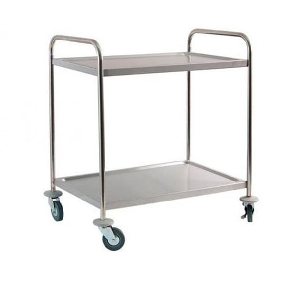 Тележка выполнена из высококачественной нержавеющей стали, которая характеризуется высокой коррозийной устойчивостью и способностью выдержать большие нагрузки.