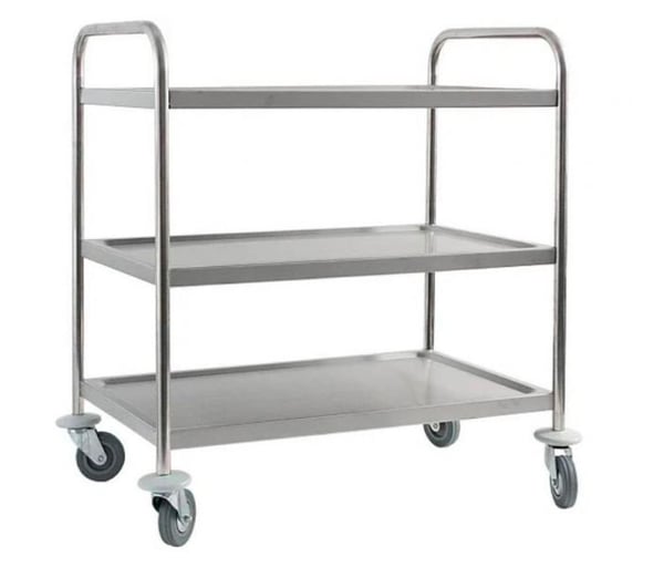 Тележка выполнена из высококачественной нержавеющей стали, которая характеризуется высокой коррозийной устойчивостью и способностью выдержать большие нагрузки.