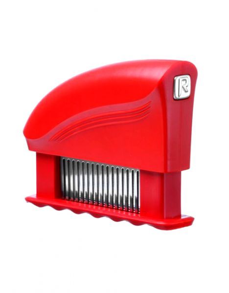 Вдобавок, если кусок мяса в начале посыпем приправами, то благодаря иглам тендерайзера они проникнут глубоко внутрь мяса и оно станет сочным и ароматным. Благодаря насечкам, во время запекания, соус которым поливаем мясо, будет легко впитываться в мясо.