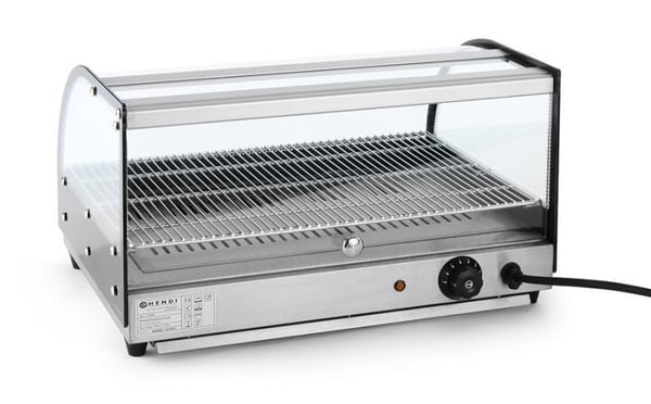Тепловая витрина, создана для хранения и подогрева готовых блюд. Корпус - нержавеющая сталь, стекло - закаленное, гнутое, в комплекте идет решетка GN1/1, с отверстиями. Подогрев осуществляется при помощи тэнов. Так же оборудована выдвижным поддоном для крошек.