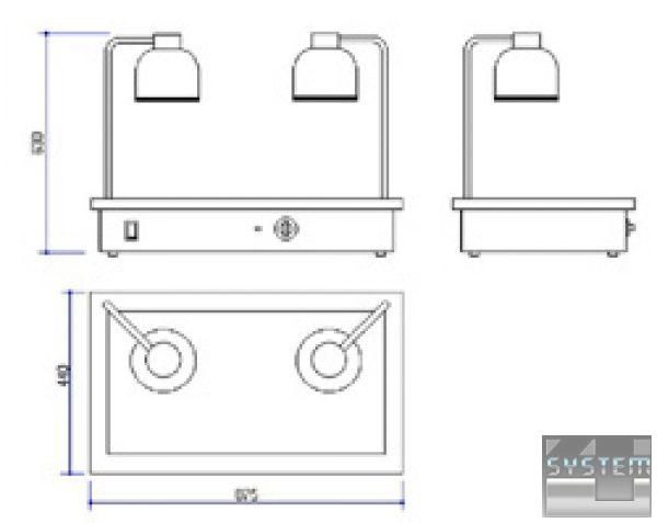 Сделан из хромоникелевого листа 18/8 н/с АISI 304. Толщина боковых и заднего стекла 8 мм, толщина верхнего стекла 6 мм. Термостатическое управление в пределе 0-90 ° C . Поддержка теплого состояния посредством 2 ламп мощностью 150В сверху и нагревательного элемента 500 В снизу.