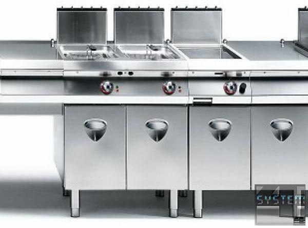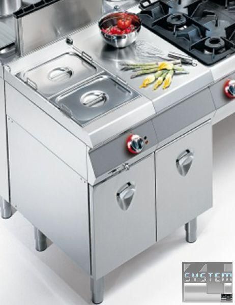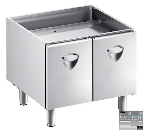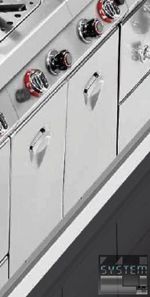 Тепловой стол с двумя дверями Angelo Po 1G0BME идеально подходит для установки под элементы тепловой модульной линии GAMMA 700, но не может быть установлен под: индукционные и инфракрасные керамические плиты, электрические фритюрницы, электрические грили.