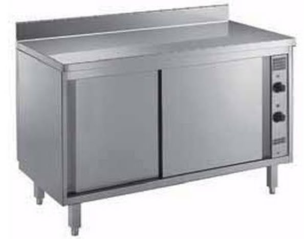 Тепловой стол от немецкого производителя GGG с рециркуляцией воздуха, 1400 мм. Корпус изготовлен из нержавеющей стали. Двери инвентаря раздвежные с двойными стенками. Гидроизолирующая и шумоизолирующая столешница, с окантовкой.