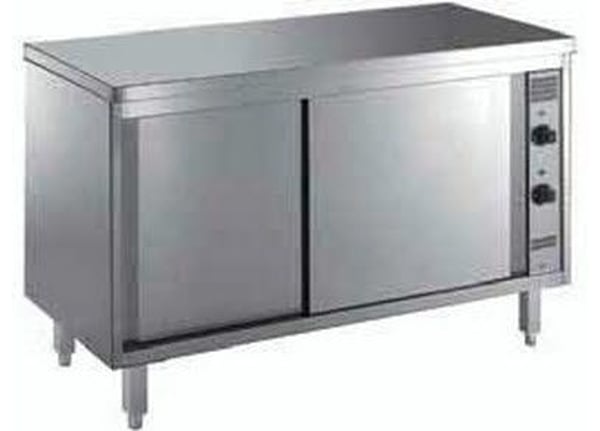 Тепловой стол от немецкого производителя GGG с рециркуляцией воздуха, 1800 мм. Корпус изготовлен из нержавеющей стали. Двери инвентаря раздвежные с двойными стенками. Гидроизолирующая и шумоизолирующая столешница, без обкантовки.