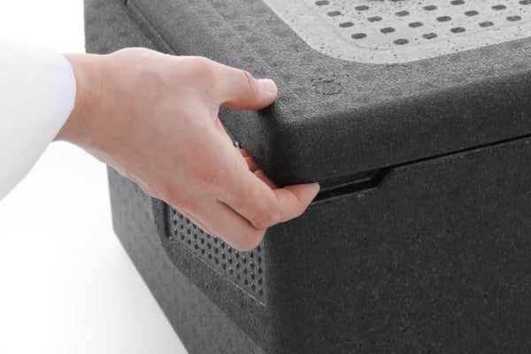 Эргономичные ручки, по бокам, способствуют удобной транспортировки термоконтейнера, а специальные углубления - облегчат открывание крышки.