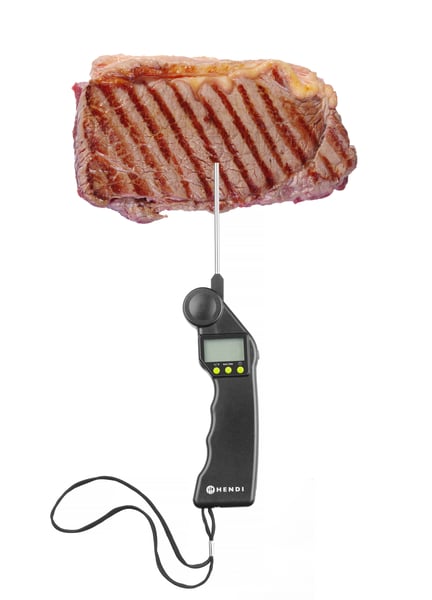 Цифровой термометр HENDI 271315 со сложным зондом был создан для того, чтобы гарантировать идеальное приготовление пищи путем измерения температуры внутри продуктов или блюд и помогает убедиться, что пища тщательно прожарено и безопасна для употребления. Этот кухонный аксессуар, разработанный для оптимальной скорости и идеальной точности, обеспечивает быстрые и точные показатели.