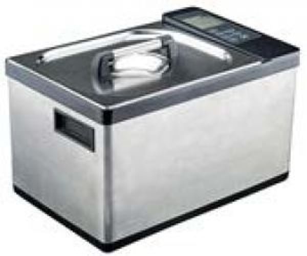 Технология приготовления сувид состоит в том, что мясо маринуют в минимальном количестве специй, запечатывают в специальный герметичный пластиковый пакет, что позволяет сэкономить время для приготовления. Корпус и выполнены ванна из нержавеющей стали. Удобные ручки изготовлены из термостойкого пластика. Крышка с силиконовой прокладкой из нержавеющей стали входит в комплекте и гарантирует герметичное закрытие, чем создает идеальные условия для поддержания стабильной температуры внутри ванны, препятствует выпаривание жидкости..Защита от сухого хода и перегрева. Объем до 10 л. Температурный режим от +5°/+99°C (допуск ±0,1°). Сувид потребляет значительно меньше электроэнергии чем духовка или плита. Напряжение 220В, мощность оборудования 0,62 кВт.