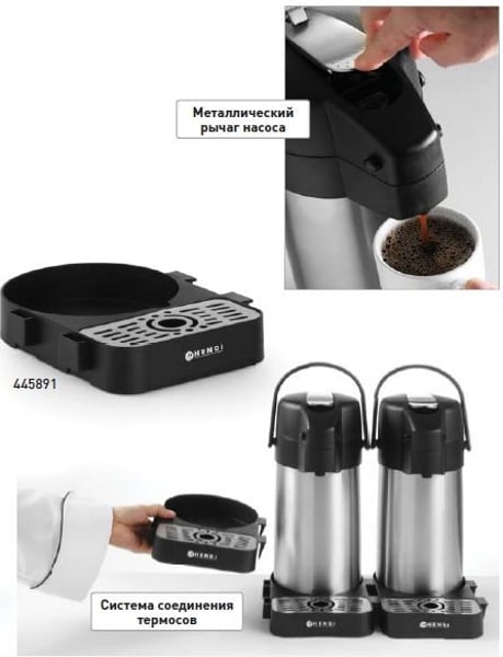 ГлавнаяПосуда и кухонный инвентарьКейтеринг и одноразовая посудаТермобоксы, термоконтейнеры и термосыТермос с насосом Hendi 445877