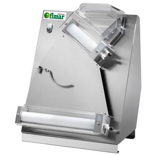 Принцип работы этого аппарата заключается в том, что благодаря двум парам валков приготовленная пицца-краст получается более нежный и очень пластичной. Один пара валков раскатывает заготовку теста до формы элипса, а затем лепешка падает на балансир и поступает на вторую пару валков, которые раскатывают ее более тонко до круглой формы. Тестораскатка выполнена из высококачественной нержавеющей стали, а валки из пищевого поликарбоната.