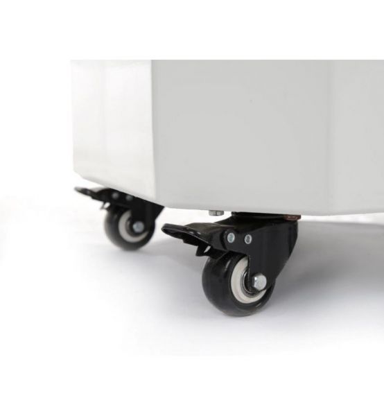 Тестомес 20L оборудован четырьмя колесами, два из них с блокировкой - для удобной транспортировки.