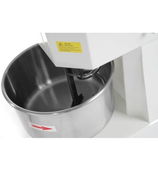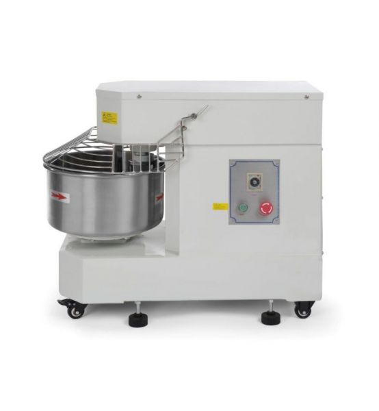 Тестомес спиральный оборудован фиксированной дежой, спиральным месительным органом и крышкой, которые выполнены из пищевой нержавеющей стали 18/10.