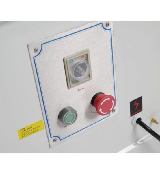 Тестомесильная машина укомплектована панелью управления, которая включает в себя кнопку вкл./выкл., регулятор скорости вращения спирали и встроенный таймер.