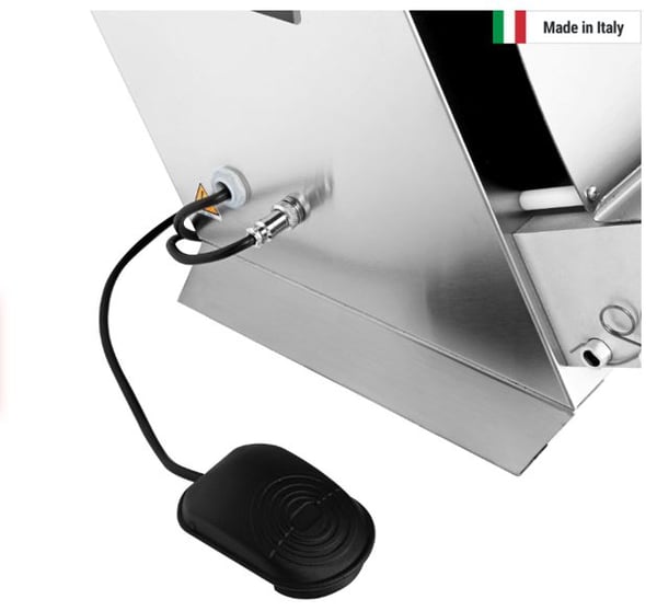 Корпус изготовлен из высококачественной нержавеющей стали AISI 304, устойчивой к коррозии и царапинам. Валик для раскатки теста и загрузочный желоб изготовлены из пластика.