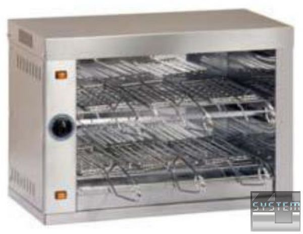Тостер горизонтальный FROSTY STQ6 выполнен из н/ж стали c электромеханическим управлением. Испоьзуется как в фаст-фудах так и в других звадениях общепита. Предназначен для разогрева пицы, гамбургеров, хот-догов. Оснащен стекленной дверью, кварцевой лампой, термостатом с контрольной лампой и регулировкой температуры, таймером 0-15 минут.