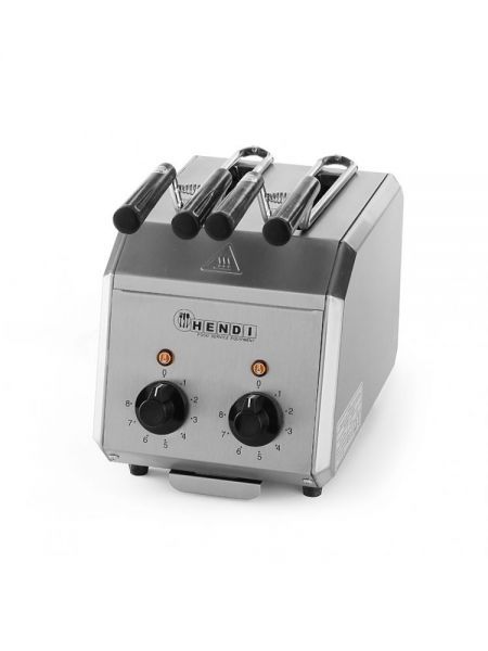 Тостер выполнен из нержавеющей стали, имеет индивидуальные две ячейки для тостов, с держателями и регуляторами.