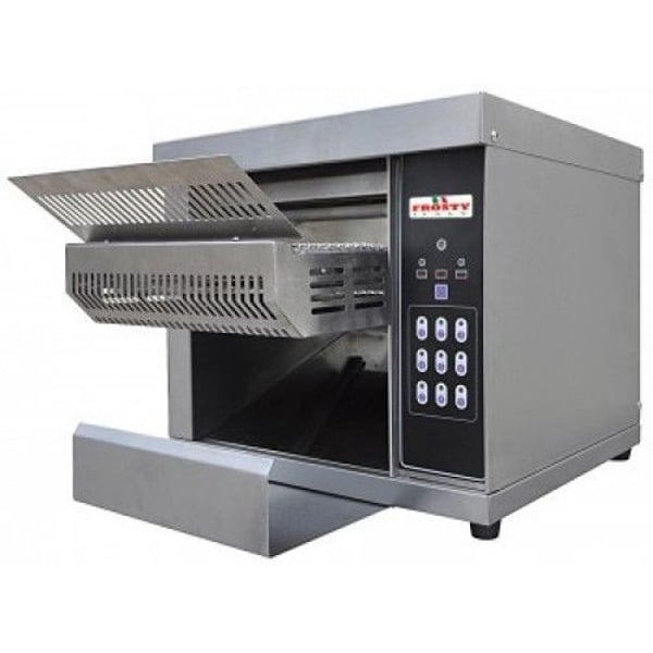 Электрический конвейерный Тостер Frosty предназначен для поджаривания и быстрого приготовления классических тостов и подогрева сендвичейа, а так же разогрева готовых изделий, включая хлебцы, булочки, пиццу, сосиски, бутерброды, гамбургеры. Главная задача и преимущество работы тостера - это возможжность придать румяную корочку и сохранить в горячем состояинии до момента подачи клиенту. Очень удобен для использования в ресторанах, точках фаст фуда, в отелях и в домашних условиях.