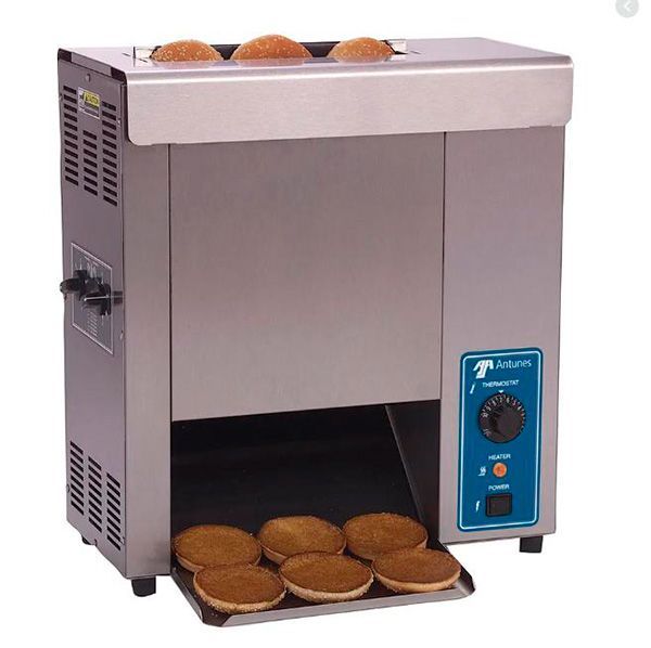 Конвейерный тостер редставляет собой настольный контактный тостер для подогрева и карамелизации булочек, используемых при приготовлении гамбургеров. Тостер карамелизует булочки для бургеров таким образом, чтобы соус и соки от начинки не проникали внутрь булочки, сохраняя ее свежей и хрустящей.