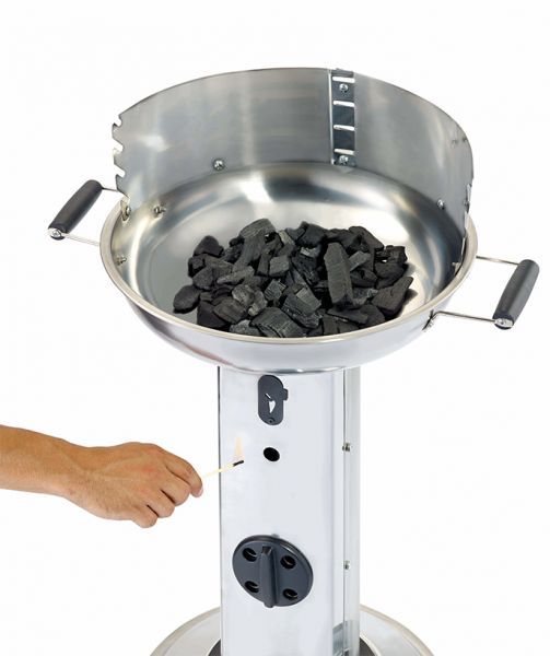 Гриль оборудован Quick Fire system – это запатентованная система ускоренного розжига, позволяющая очень быстро, менее чем за 15 минут, подготовить угли до рабочей температуры. Регулируемая по высоте решетка позволяет выбрать необходимую высоту над углями и, соответственно, требуемый температурный режим приготовления. Внизу гриля расположен съемный ящик для золы и вентиляционная заслонка. Крепкий и устойчивый корпус, изготовленный из качественной нержавеющей стали надолго сохранит приятный внешний вид и эксплуатационные качества Вашего гриля.