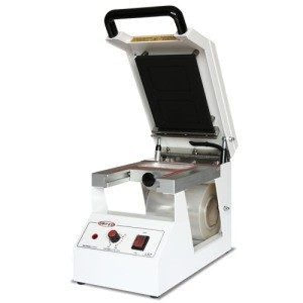 Машина термоупаковки лотков, с механическим управлением имеет корпус из окрашенной стали. Ширина пленки - макс.150мм. Машина имеет ручную регулировку температуры. Запатентованный салазковый механизм матрицы позволяет упаковывать лотки различных размеров 137х190(95)мм. Опускаемая и фиксирующаяся крышка гарантирует запайку с 4 сторон. Аппарат подходит для упаковки жирных продуктов.