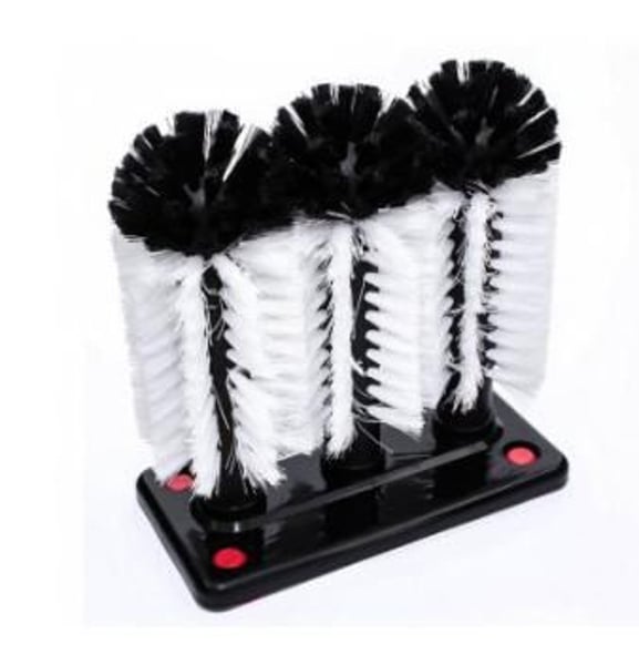 Ерш для мытья стакана выполнен из полипропилена, имеет 3 щетки из поливинилхлорида (ПВХ).
