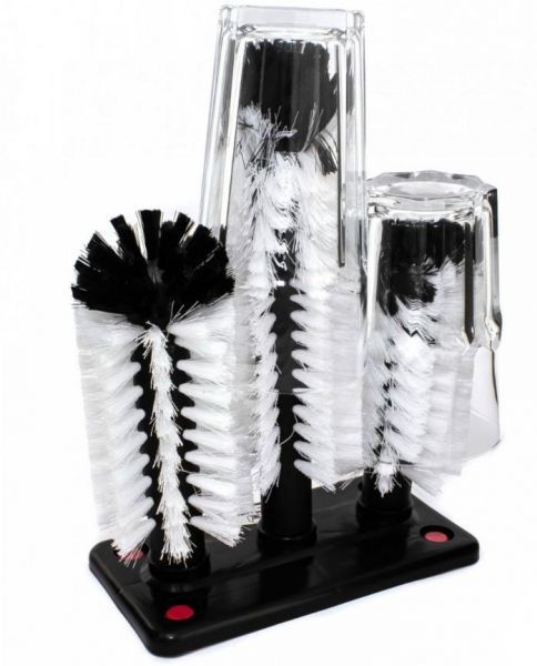 Ерш для мытья стакана выполнен из полипропилена, имеет 3 щетки из поливинилхлорида (ПВХ).