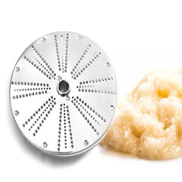 На рабочей поверхности диска V-образно нанесено перфорацию - это мелкие отверстия, сквозь которые выполняется протирка овощей и фруктов до пюре.