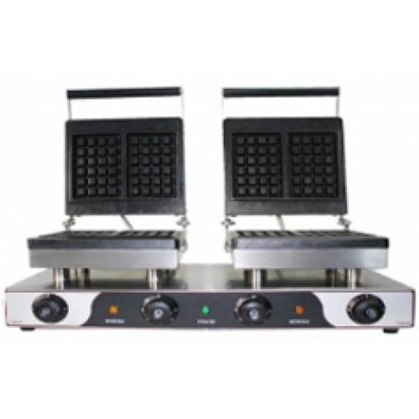 Корпус двопостовой электрофавельницы выполнен из нержавейки, а рабочие поверхности для приготовления вафель из чугуна и антрипригарного покрытия. На этом оборудовании можно приготовить не только бельгийские вафли, но и венские и английские. Форма вафли прямоугольная, размер 185х185мм, количество ячеек 4х6шт. Время выпекания быстрого кондитерского изделия от 2 до 4 минут. Мощность 3,0кВт. таймер - 15 минут.