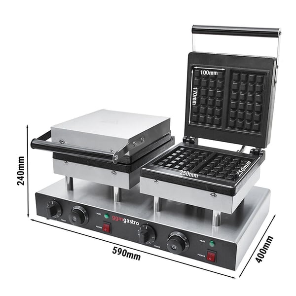 Двопостовая вафельница предназначена для выпечки объемных бельгийских вафель прямоугольной формы (4х6 квадратов) с глубокими ячейками. С помощью вафельницы можно готовить широкий ассортимент изделий, включая тонкие хрустящие заготовки или бисквитное основание для пирожных. Это оборудование незаменимо в кондитерских цехах.