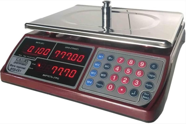 Торговельні ваги мають двосторонній світлодіодний дисплей з підсвічуванням, в приміщенні червоний колір символів чітко показує вагу.