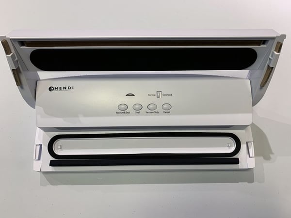 Камерный упаковщик Hendi 975350 на подъемной крышке оборудован сварочной планкой. Данное расположение планки облегчает чистку устройства и минимизирует риск получения ожогов во время работы.