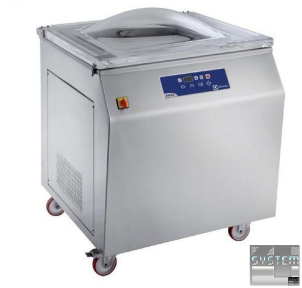 Вакуумупаковочная машина Electrolux 600047, колпакового типа, электронная панель управления, производительность насоса 60 м³/ч, два боковых шва спайки длиной по 650 мм, цифровая панель управления с памятью на 9 программ, крышка из прозрачного плексигласа, самодиагностика неисправностей, передвижная на колёсах, корпус из нерж. стали AISI 304