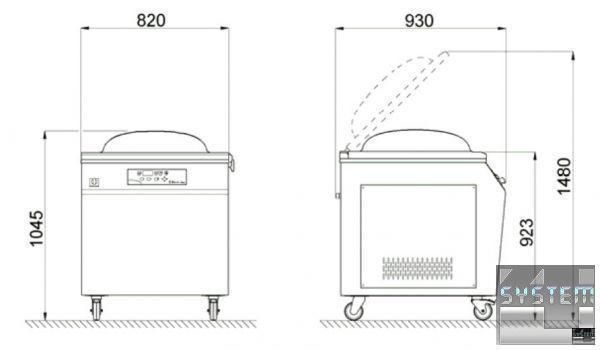 - Напольные вакуумные упаковщики производительностью 25, 40 и 60 м3/ч предназначены для крупных предприятий (300 – 800 порций в день)