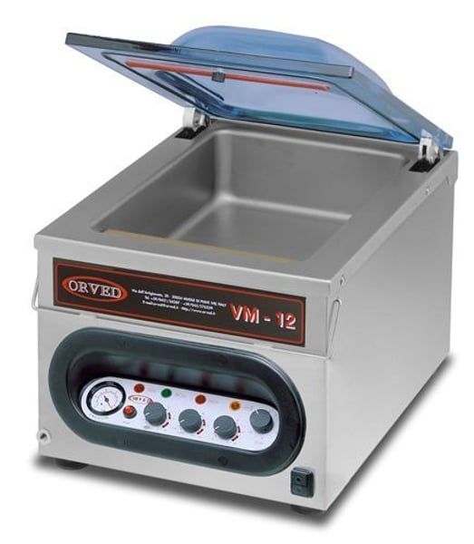 Вакуумный упаковщик VM/12 оснащен электромеханической панелью управления. Корпус упаковщика изготовлен из нержавеющей стали. Чистку облегчает отсутствие острых углов в камере упаковщика. Возможна упаковка в газовой среде. Двойной сварочный шов. Таймер.