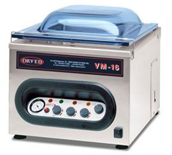 Вакуумный упаковщик VM/16 оснащен электромеханической панелью управления. Корпус упаковщика изготовлен из нержавеющей стали. Чистку облегчает отсутствие острых углов в камере упаковщика. Возможна упаковка в газовой среде. Двойной сварочный шов. Таймер.